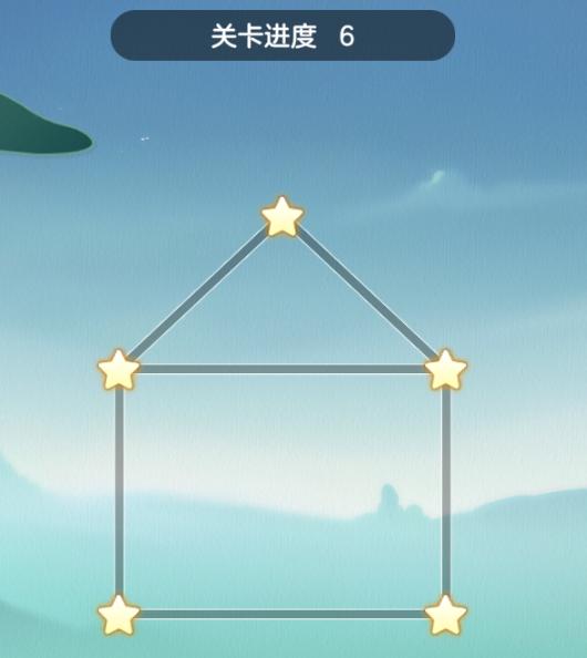 1、一笔画玩法,不能重复,全部连接星星