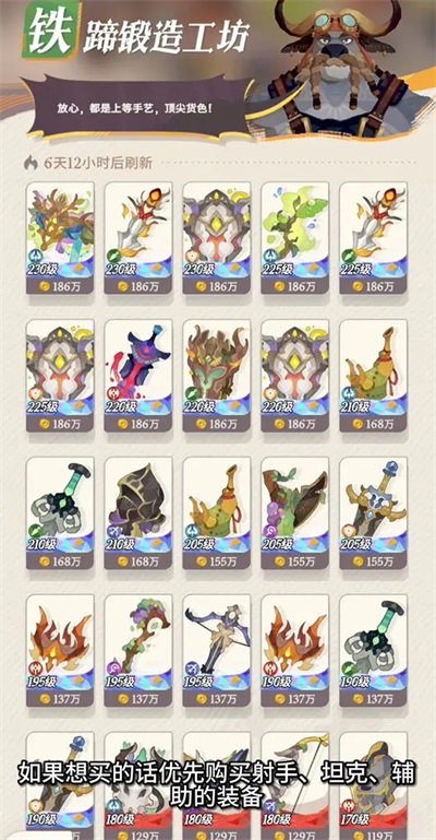 锻造工坊:太贵了,装备还都是暂时性的,不建议买。