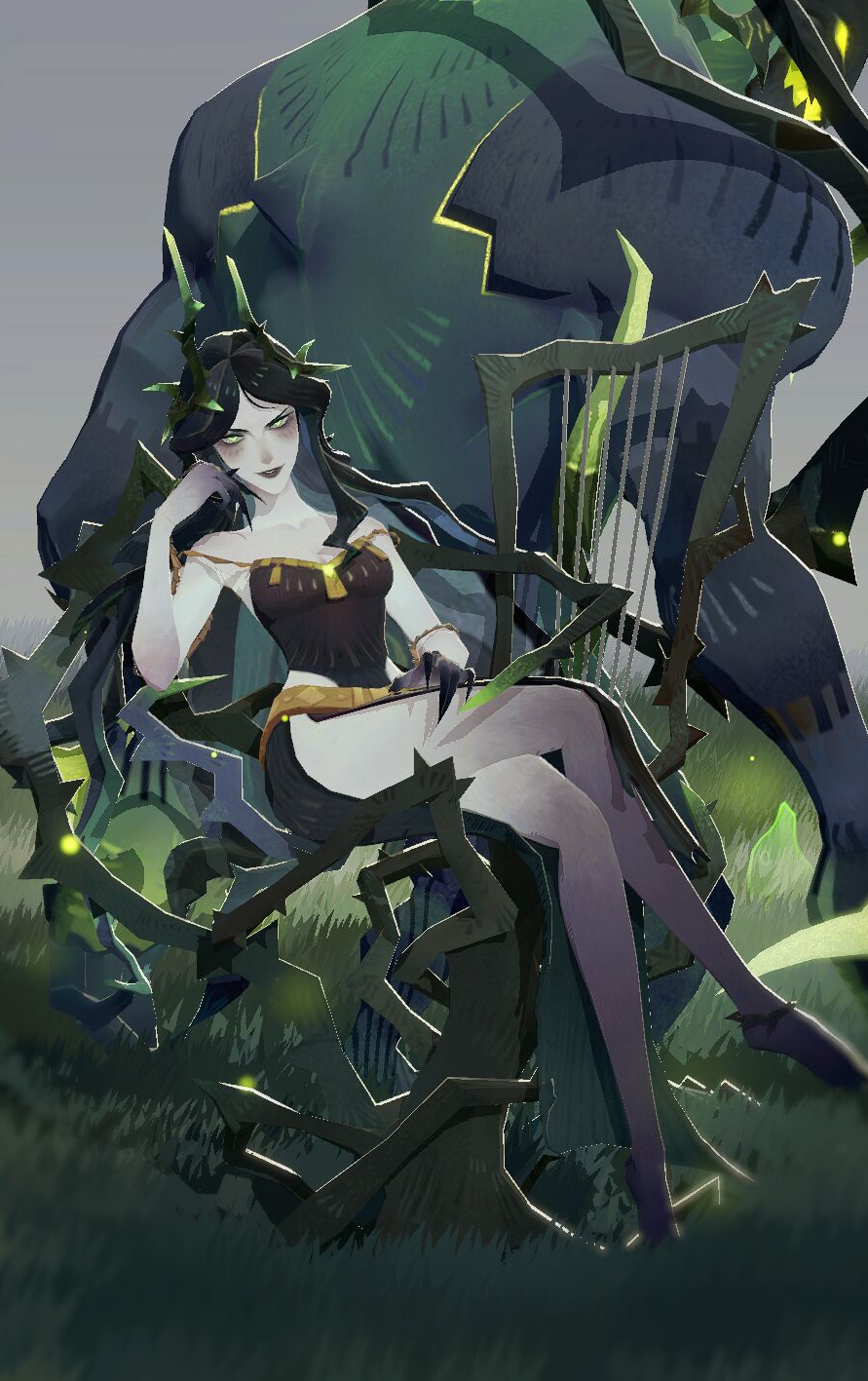 对一名敌人施加强力缠绕,被缠绕的目标无法行动,且每秒受到60%伤害,持续4秒。自身每秒会从受该技能影响的自标身上永久吸取1.5%的护甲与魔抗,并与卡莱尔先生共享吸取到的属性值。对于每个目标,最多只能通过该方式吸取8次属性值,该技能会优先对不处于免疫控制状态、且吸取次数还未达到上限的敌人使用。
