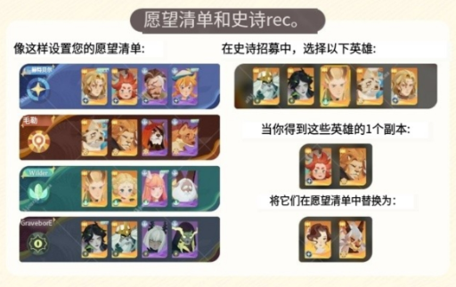 1、进入游戏后的第一件事,就是在抽卡的地方设置我们的心愿单角色,这样可以提高该角色在对应级别中的UP几率,帮助玩家快速建立队伍。