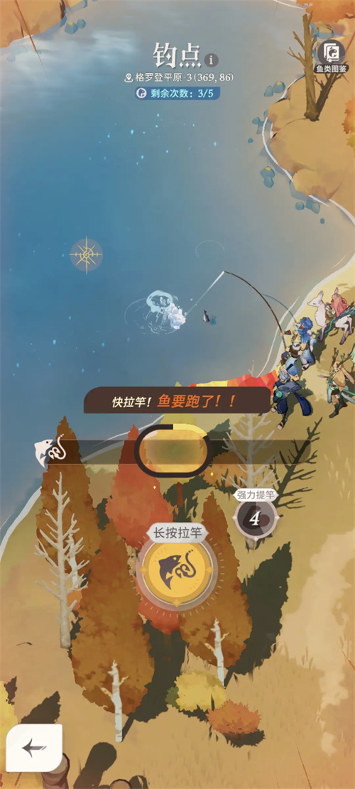 找到金色钓点,如果遇到的是普通鱼就放掉(不会消耗钓鱼次数),直到遇到异色鱼才拉杆。