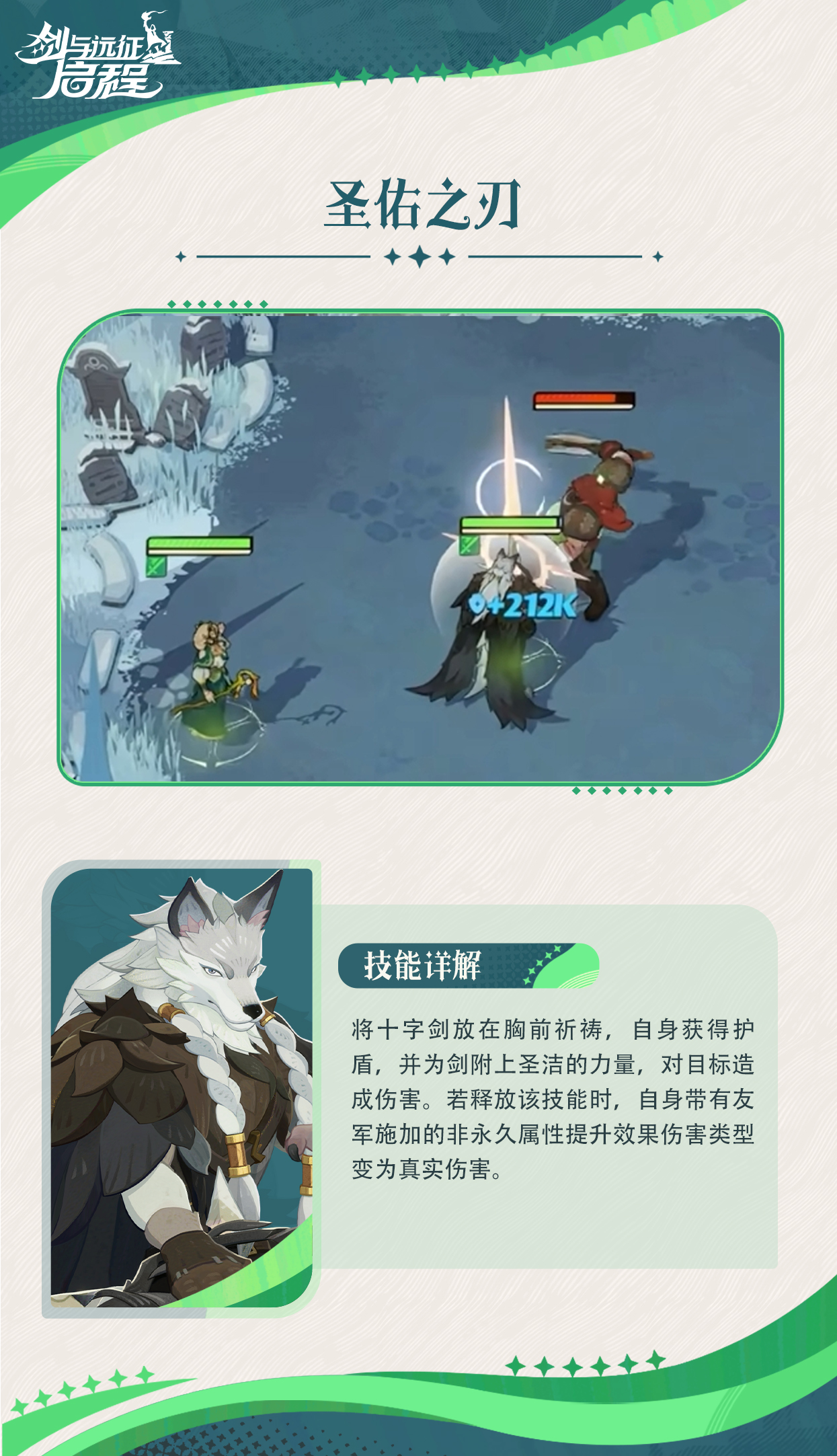 法阵存在时:普攻替换为“圣佑之刃”,护盾值上限降低但触发频率提高。