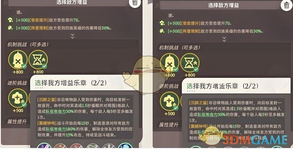 3、敌方buff选择:最后一排属性提升不要选,只选第一排和第二排的属性。