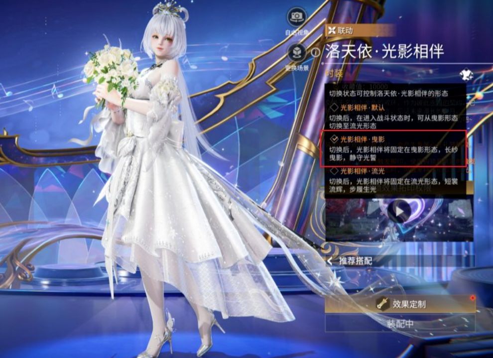 该时装拥有曳影、流光双形态,战斗可自动切换,并支持形态锁定;