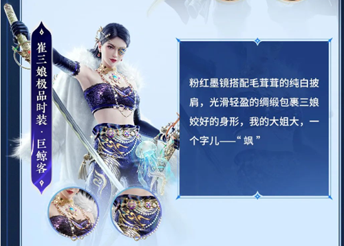 购买这个赛季的秘藏宝卷,就能解锁胡为的极品时装【行空裘】和华贵靡丽的崔三娘极品时装【巨鲸客】。