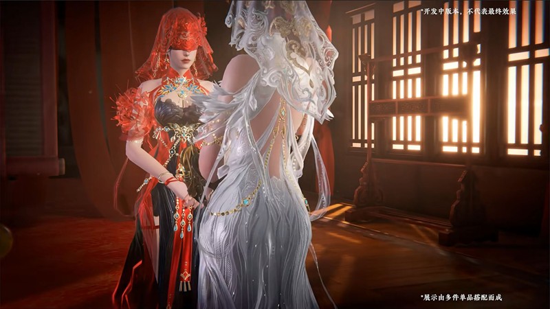 宁红夜神品时装【赤皓新囍】:以炽热的红色调为主,展现出宁红夜的英姿飒爽与独特魅力。