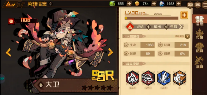 大卫是火焰系的输出型射手,大招是射出一支火焰剑,落点会产生爆炸伤害。这个技能有个挺好的特点,就是优先锁定BOSS、精英怪以及血量比较高的目标,不会随机乱打,输出效率比较稳定。实际测试下来伤害很高,配合神器赞美星空引爆所有敌人之后再用大招,零星状态下就能打掉石头人BOSS将近五分之一的血,这个数据在同类输出英雄里很突出。另外大卫的适配性很广,加伤流、核爆流这些主流打法都可以带他,基本不挑阵容,算是SSR里性价比很高的一个输出选择,强度给五分没有争议。