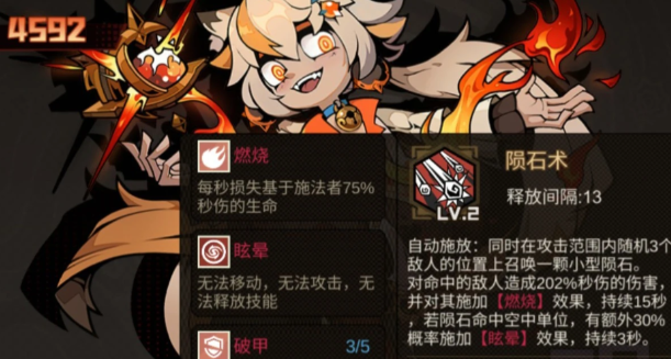 搭配天罚的被动技能,就可以把爆发拉到极致,而它的自动技能冷却时间是比较短的,可以穿透多个敌人。在打持续性伤害时,还可以配合队友的技能联动,副C就应该选择维维安。这就是一个阵容粘合剂,被动可以缩减自动冷却技能,自动技能陨石术,还可以给敌人挂一个将近15秒的燃烧。每一段都可以触发天罚的增伤,还有自身的冷却,所以越是攻击,那技能放的也就会更加的频繁。