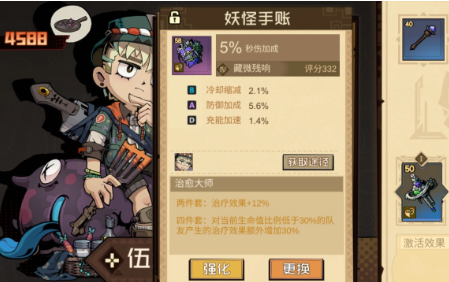 治疗位伍迪这就成为了队伍中的续航保障,被动还是比较适应这一套多段伤害的阵容。队友每一段技能伤害全部都可以触发回血,根本就不需要担心血线的问题。而且自动技能还可以给全队增加大量的伤害,能有效提升输出。回响可以直接带治愈大师,两件套可以加治疗效果,4件套对于残血队友的治疗量也可以额外的提升,最后的护卫就选择莱格拉斯。不需要去堆输出,主要是以防御力,还有生命值为主即可,自动技能就可以帮助队伍去挂燃烧。