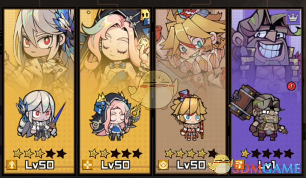 与上面的区别是肉盾换成了冰的哈伦克,哈伦克虽然是R卡,但还是挺肉的,当然,主要原因是为了带时光之契破冰(必须上阵1位冰属性英雄),破冰打带护盾的boss非常好用。