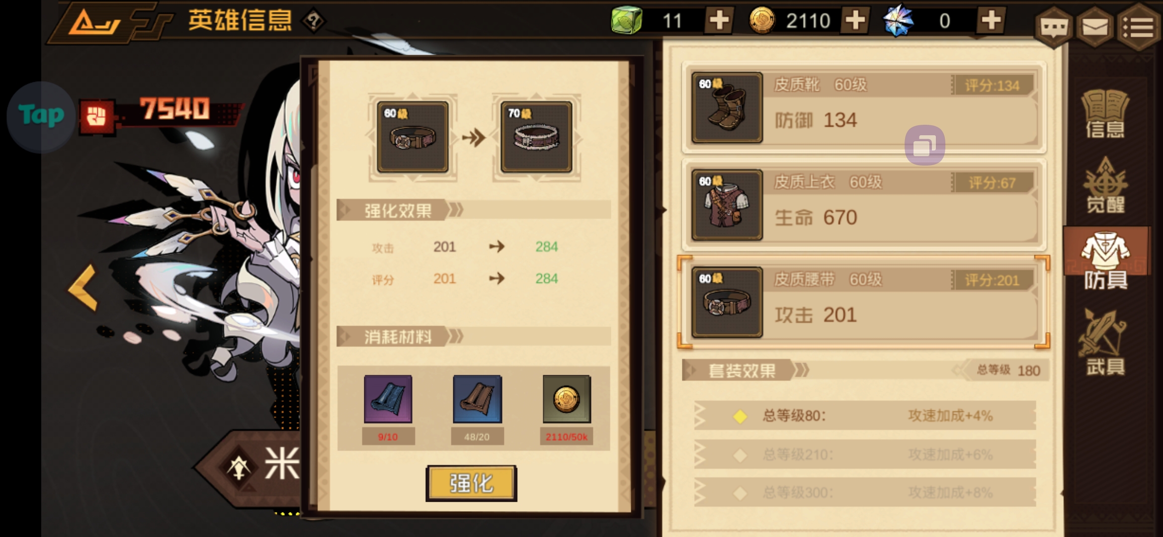 武器:做好一把穿英雄身上在同一系列情况下,只要研究-英雄身上的装备会同时升级。注意下图第一排为一系列,二排只是数值会多一项,但是个人感觉有点鸡肋。因为第一排如果是60级武器500伤害值,第二排就是56级武器400伤害值另带一项属性值。看第二图: