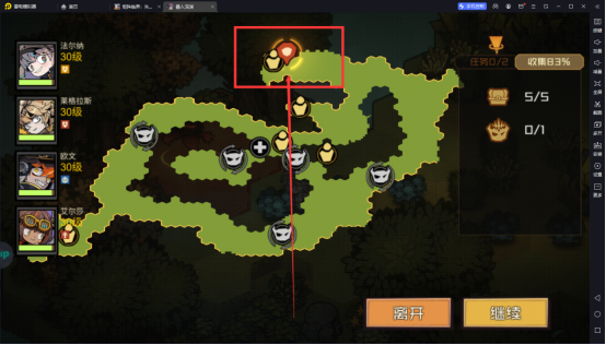 6、第三章3-1主线关卡,如果已经探索右边的一半地图中途退出的话,再次进入游戏关卡进入传送阵会直接传送到右边的地图,那么就会卡在方框这个位置找不到出路,这个时候就要重新进关卡,不要进传送阵,把左边的地图也刷出来就好了。如图二所示,路是相连的。
