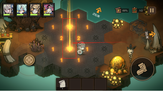 1、第一章1-4主线关卡,想要拿到上古卷,需要先拿到两个宝石打开机关,在出现对话选择的时候选择拿走,之后跟着箭头走原本巨石挡住的路,即可离开。这一关可以开启战斗的二倍速。