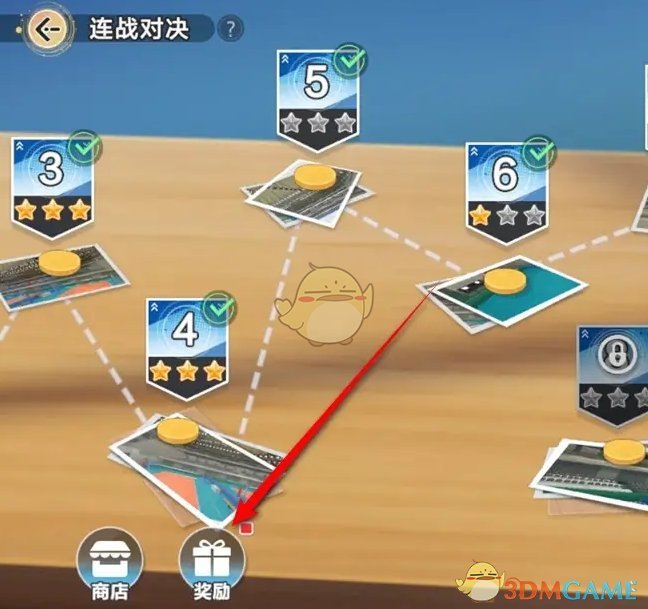3、前往连战对决页面后,点击左下角的奖励进行领取;