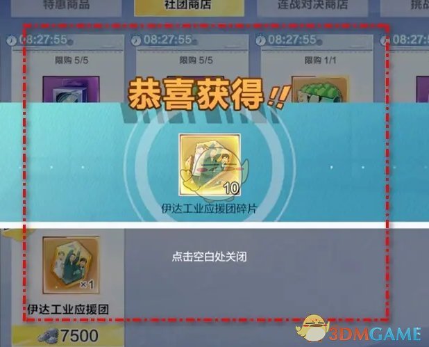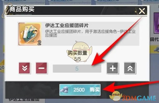 3、最后在商品购买页面,选择购买数量,消耗社团货币进行购买即可获得碎片;