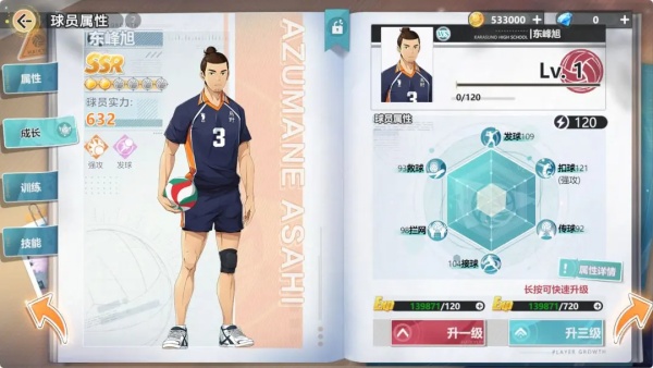 2、有着强攻跟发球的属性定位,所以他可以在阵容中担任强攻。