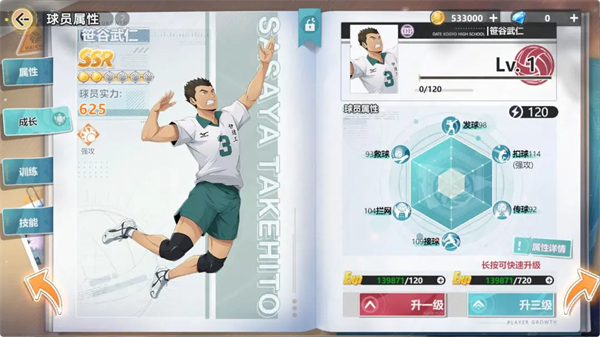 属性能力综合性比较强,还有很多功能性,如拦网、接球、传球、扣球等。
