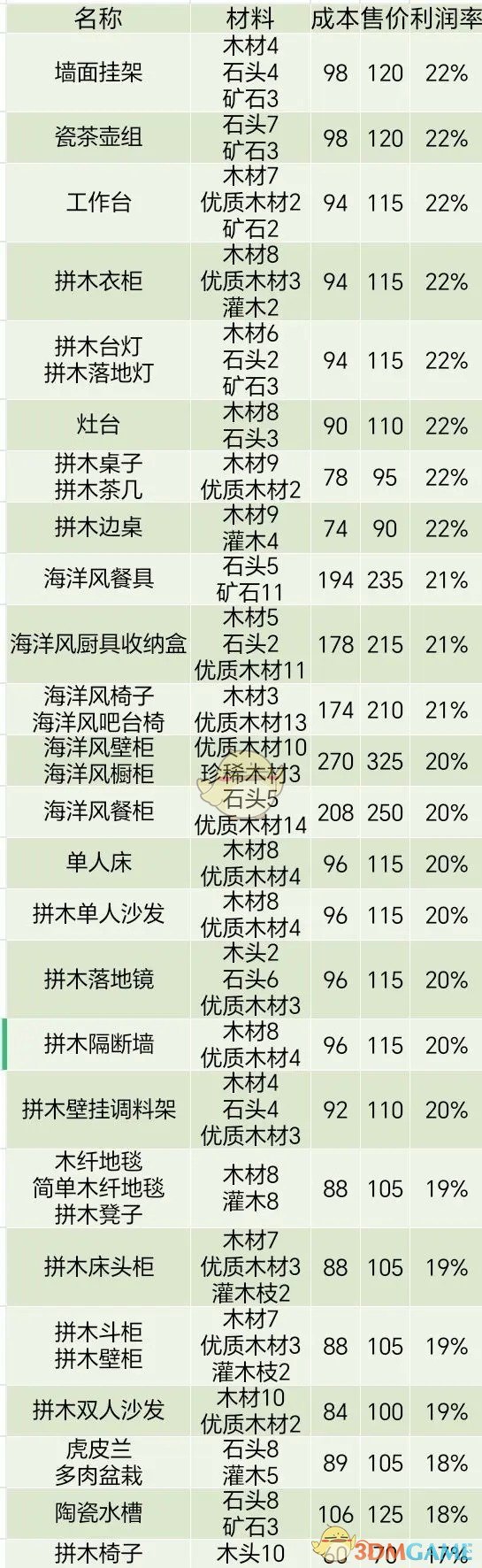 以上就是小编整理带来的心动小镇家具售卖能赚多少,家具售卖利润率介绍,更多相关游戏攻略,请关注手游网!