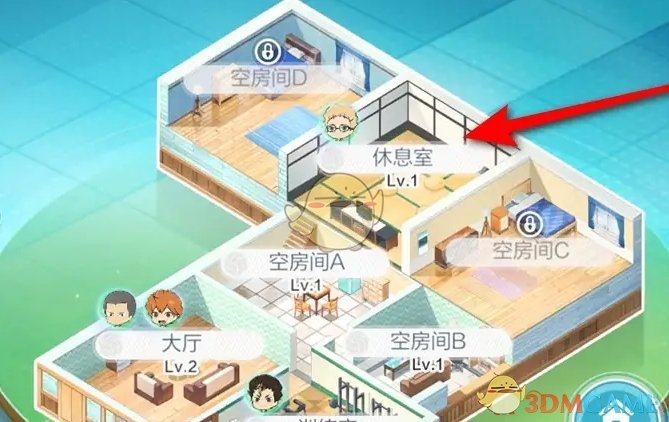 2、在合宿基地,点击需要摆放家具的休息室前往;