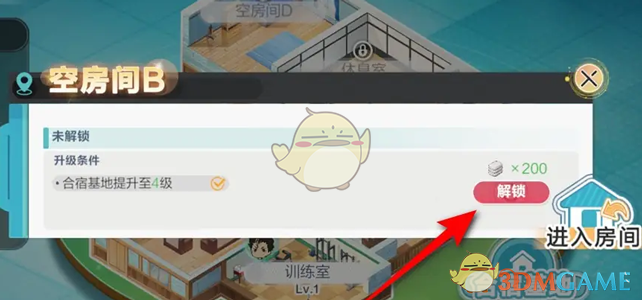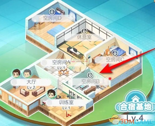 2、前往合宿基地后,找到没有解锁的空房间并点击;