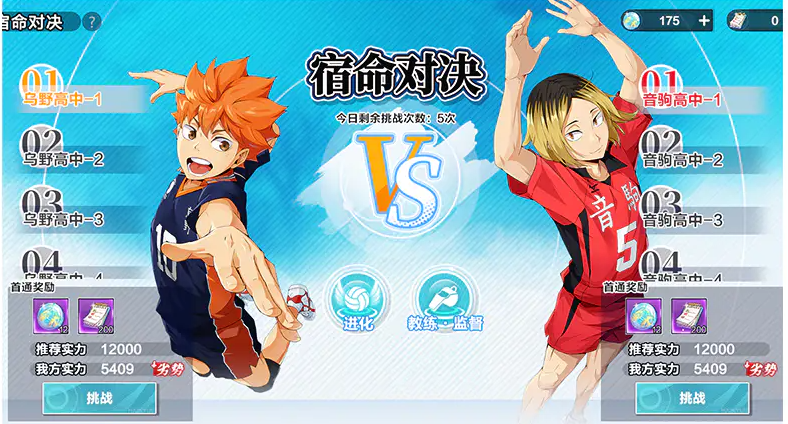 在「宿命对决」中,可通过挑战乌野高中和音驹高中获得纪念徽章、指导经验等奖励※每天可以挑战10次,挑战次数于每日6:00重置