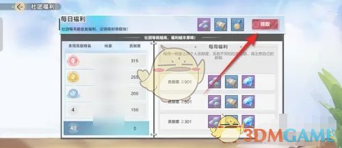 答:前往社团点击社团活动,找到每日福利前往,点击领取即可获得奖励