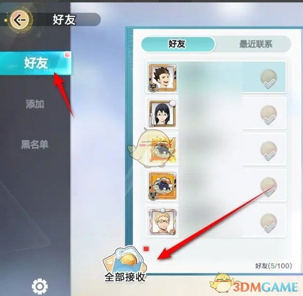 3、完成赠送后,继续点击全部接收即可一键领取好友赠送的友情币;