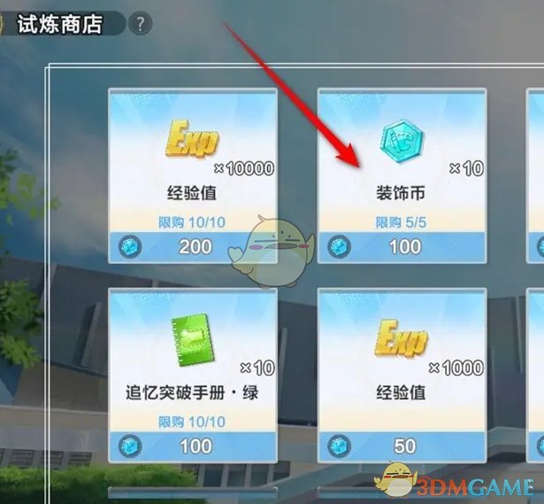 2、在试炼商店内,找到装饰币点击购买;