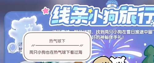心动小镇中线条小狗旅行记第1天已经开启,玩家们需要根据谜面热气球下,寻找小狗泡泡,触碰即可获取爱心小狗康宝蓝食谱,下面小编就为大家带来详细的攻略,有需要的自行查看吧。