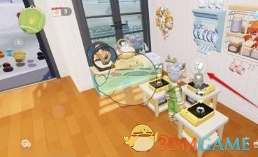 6、参考图鉴所示,制作小金毛康宝蓝需用2份牛奶以及等量的咖啡豆和咖啡,在灶台完成烹饪。
