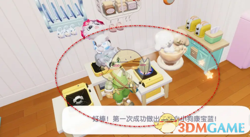 4、最后即可点击开锅收菜的图标,即可成功烹饪出爱心小狗康宝蓝,以便食用。