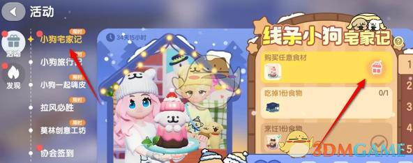 2、打开活动面板找到小狗宅家记活动,在右侧可以看到活动任务,选择购买任意食材。