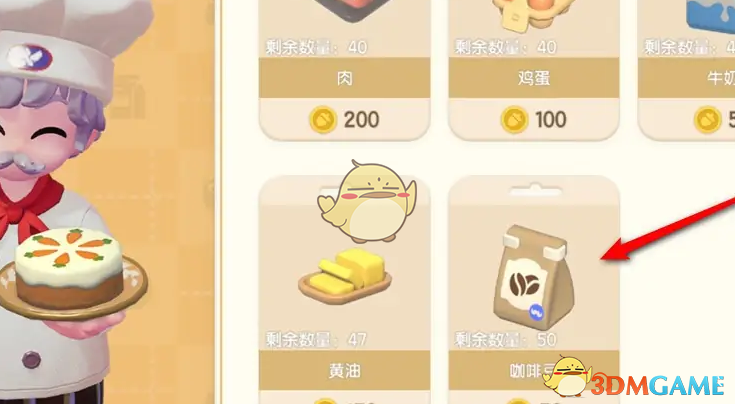 3、进入烹饪商店后,找到并点击咖啡豆物品
