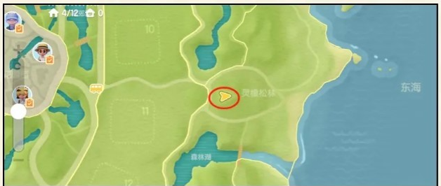 2、跟着任务指引来到地图这个位置(看下图),就可以看到一个人形的橡木(名字叫橡走走)。