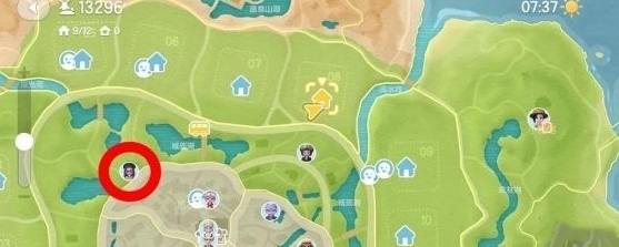 1、首选打开游戏地图,然后前往下方的标记点的位置。