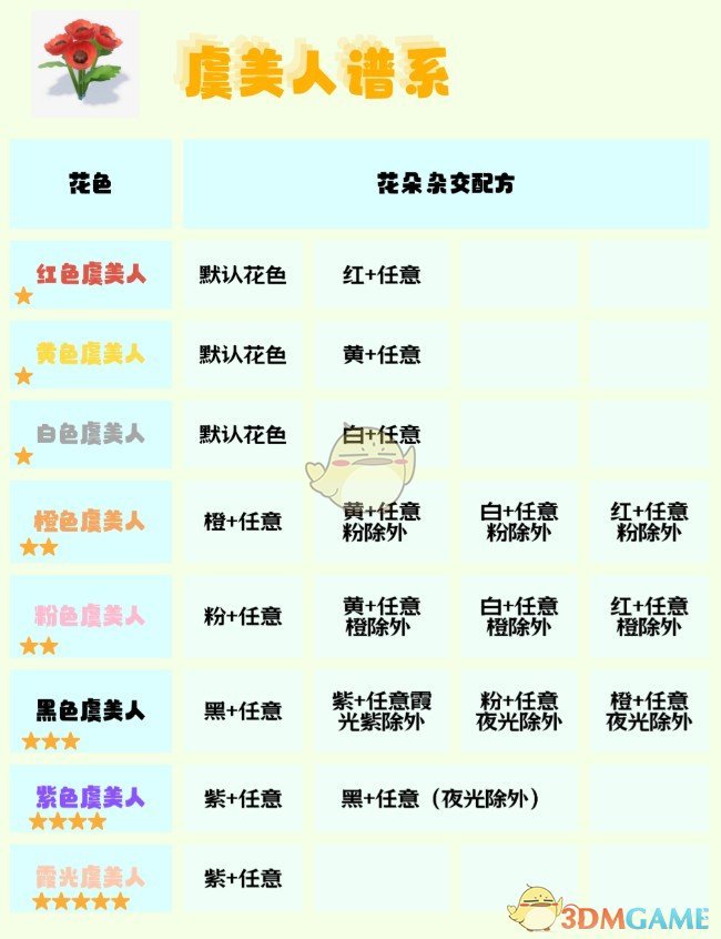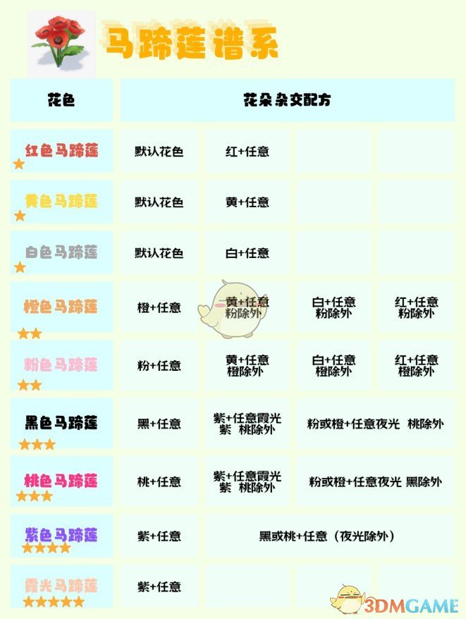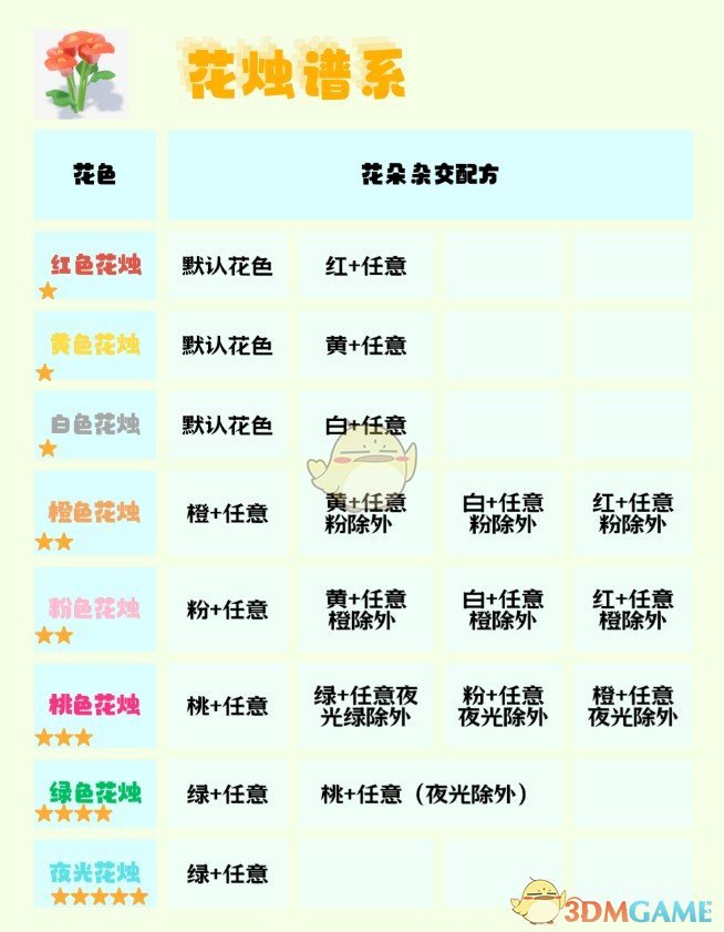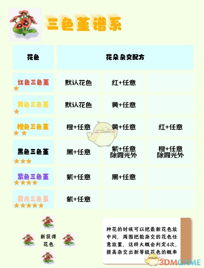 3、最新获得的花的种类可以放在十字的重心,增加判定次数,提高高星杂交概率。