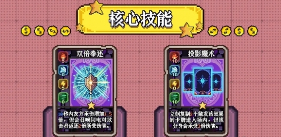 4、投影魔术:在双倍奉还生效期间,使用投影魔术复制友方角色,复制出的单位能够承受3倍伤害,复制单位受到伤害后会大幅增加反击伤害。