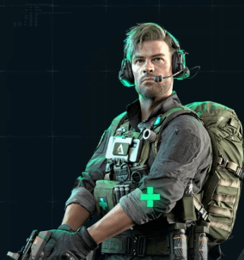 1、罗伊·斯米,特长是救起的队友可以快速恢复血量,可以使用道具烟雾遮挡敌人的视线。