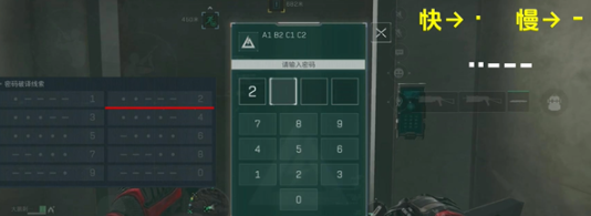 3、先听完整的,第一个两快三慢,对应密码2。