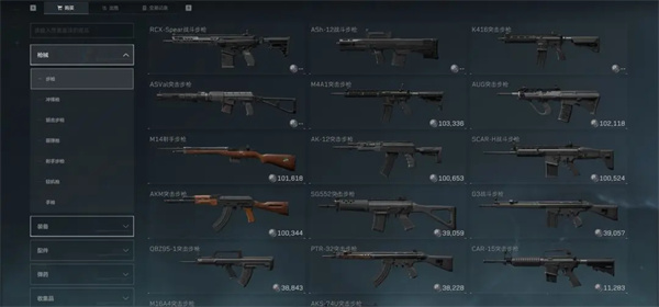 2、接着在页面中选择枪械或配件进行预览。
