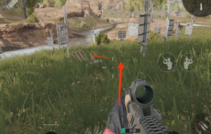 在获取该雷区密码时,应沿着图中箭头方向蹲行前进,直至抵达倒地的牌子前。尽管接近时会有地雷爆炸,但不会伤及我们。爆炸后,可于地面上看到摩斯密码。离开雷区时,请务必沿原路返回,并保持警惕。