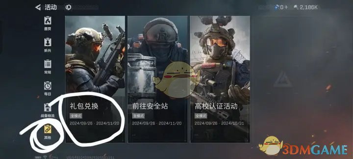 2、在活动界面左侧选择下方的其他,然后可以看到礼包兑换