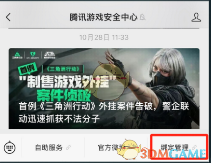使用微信搜索并关注“腾讯游戏安全中心”微信公众号
