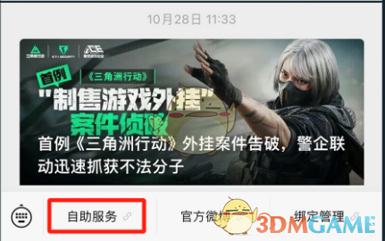 第一步:关注腾讯游戏安全中心微信公众号