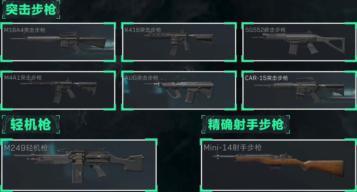 其中SG552突击步枪的射速要强于其他两把枪,操控性也不错,极具性价比。