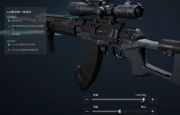 2、配重:和枪管一样,对武器的稳定性和瞄准时移动速度进行影响,配重越重,武器越稳定。