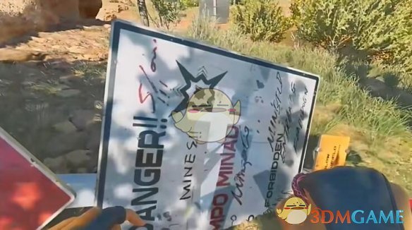 线索3:再前往村庄左边的雷区,靠近牌子让地雷炸就可以看到线索。