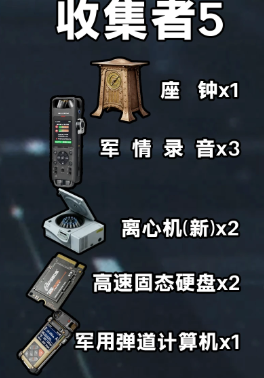 1个座钟、3个军情录音、2个离心机、2个高速固态硬盘、1个军用弹道计算机。