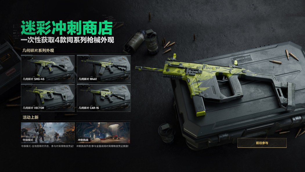 三角洲行动免费武器外观怎么获取,近期官方推出了4款充满春日气息的武器外观,就是下面这四款几何碎片系列的武器外观,最重要的是这四款外观是免费获取的,玩家只需要参与对局即可在商店中免费领取,还在等什么,赶快到游戏里来领取吧。