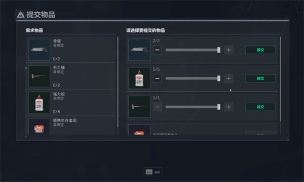 目标:提交指定收集物品,如靛蓝色额温枪、消毒酒精、血压监测器等。